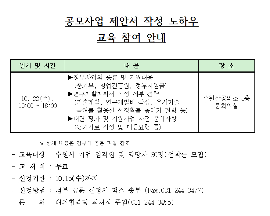 ‒ | 공모사업 제안서 작성 노하우 교육 참여 안내 |